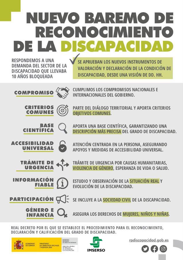 Este texto, que se ha construido sobre la base del diálogo territorial, establece unos criterios objetivos para la valoración y calificación del grado de discapacidad en todo el territorio del Estado, garantizando con ello el acceso en igualdad de condiciones para toda la ciudadanía. Además, proporciona una base científica para la comprensión y el estudio de la salud y de los componentes sociales y económicos que impactan en la persona, garantizando una descripción más precisa y completa del grado de discapacidad que redunda en una mayor eficiencia y transparencia. Por otra parte, incluye a representantes de la sociedad civil de la discapacidad como integrantes de la Comisión de Valoración de la Discapacidad, haciéndolos partícipes en primera persona.